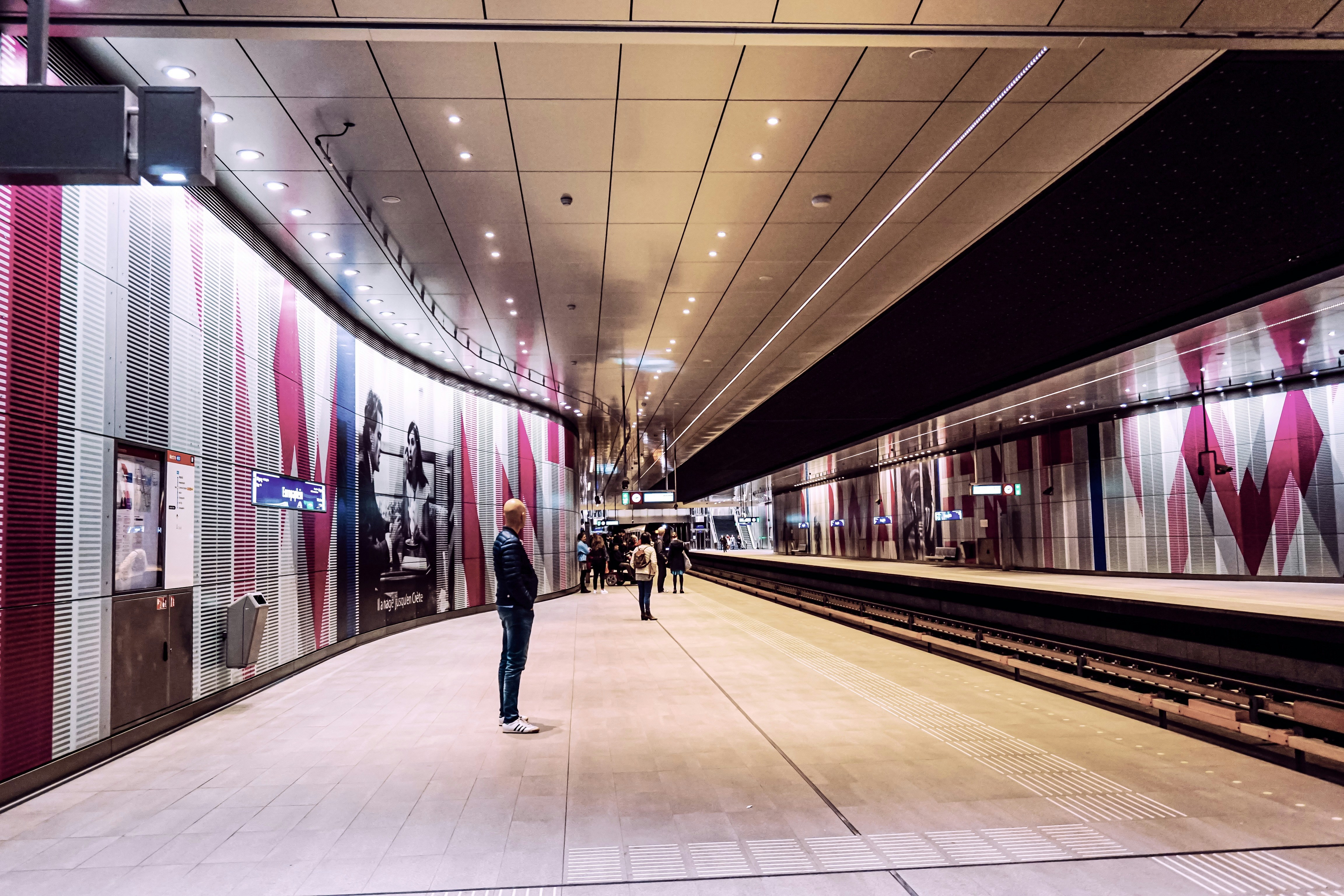 Inside Amsterdam metro station.