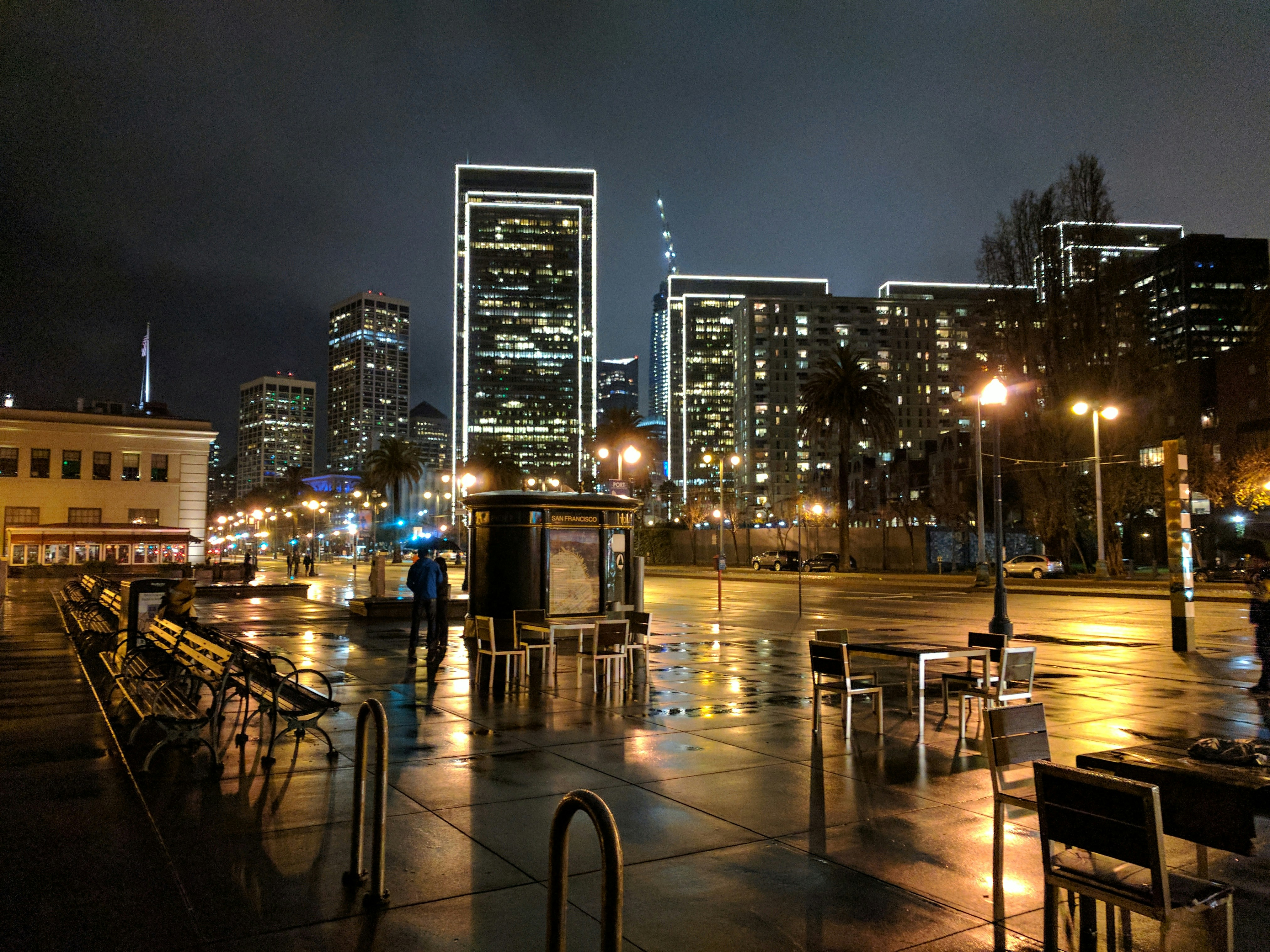 The San Francisco financial district looked beautiful at night, and I snapped a photo on my Pixel. This photo is straight off the camera, with no post processing applied.