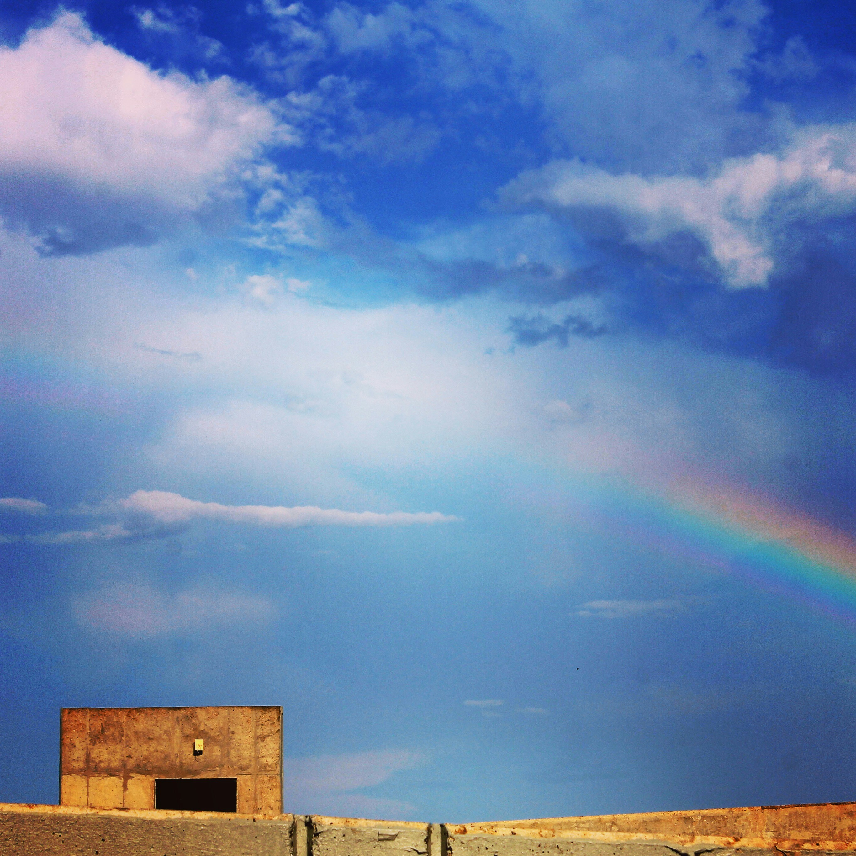 This was taken on top of a parking garage one afternoon in Jackson ,MS. We were blessed with a rainbow.