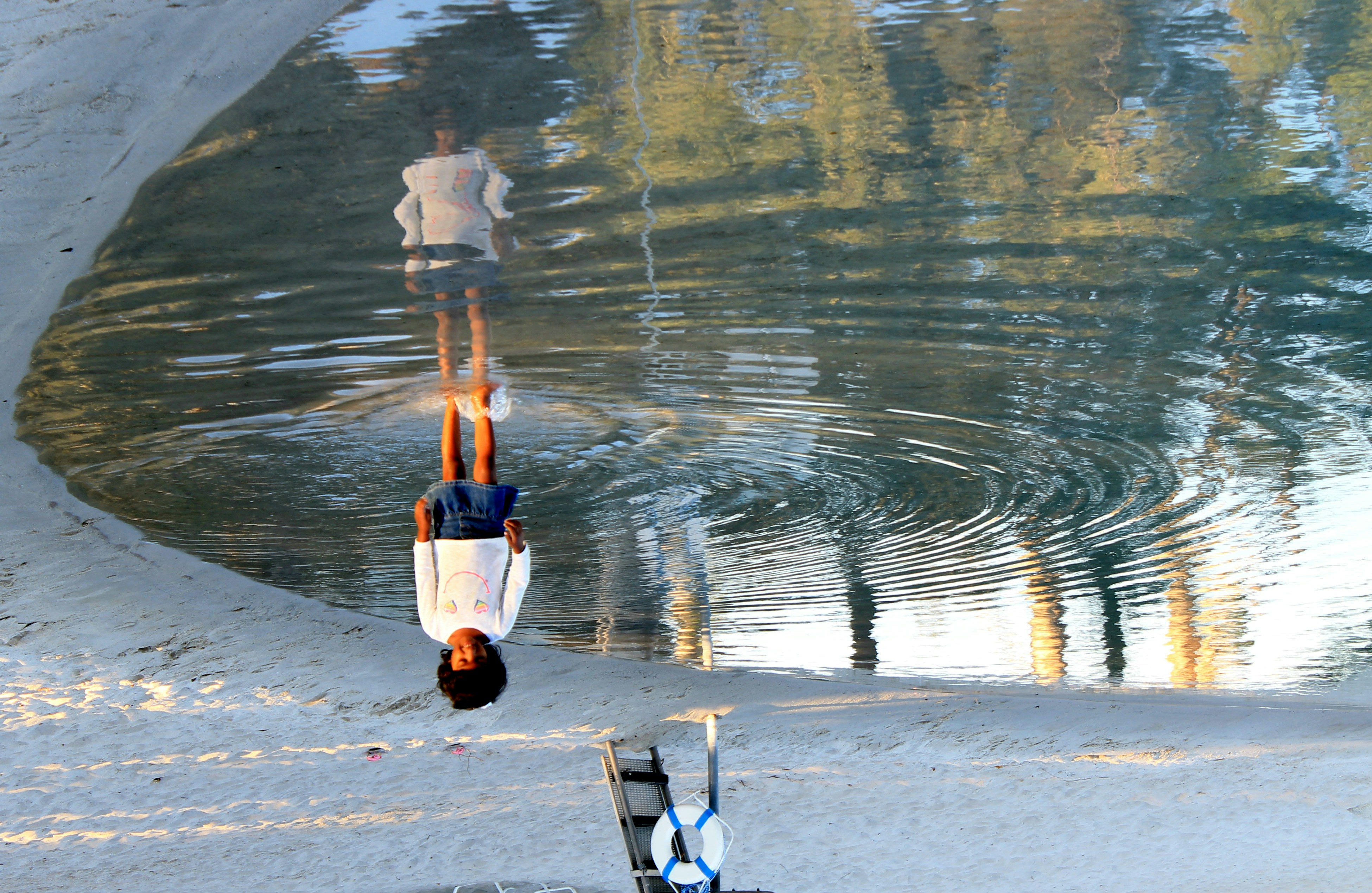 The happiness is a child playing in water and a photographer getting a chance to capture it.
