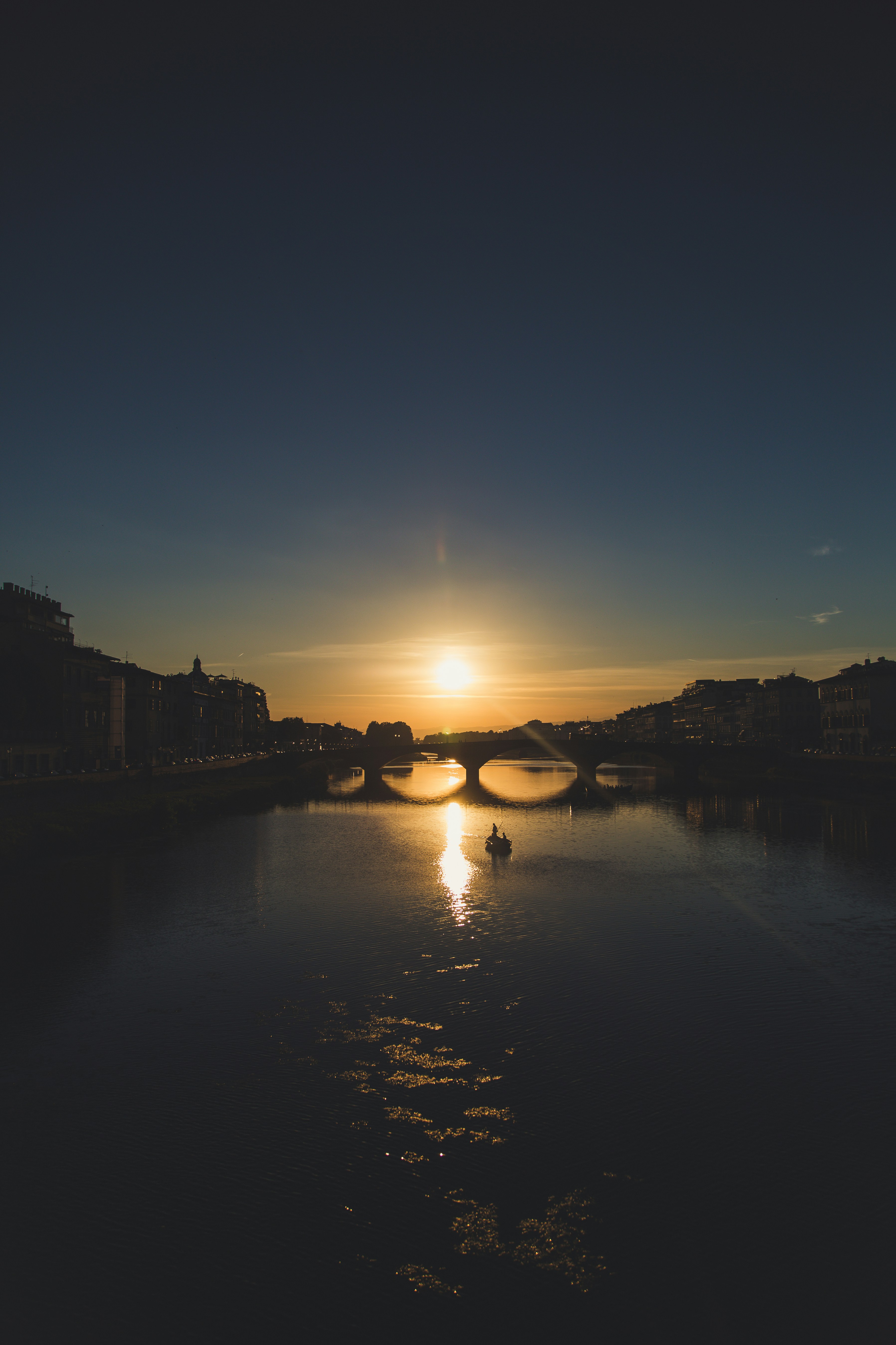 Tramonto sugli spuntoni di ponte santa trinita, Firenze, italia.