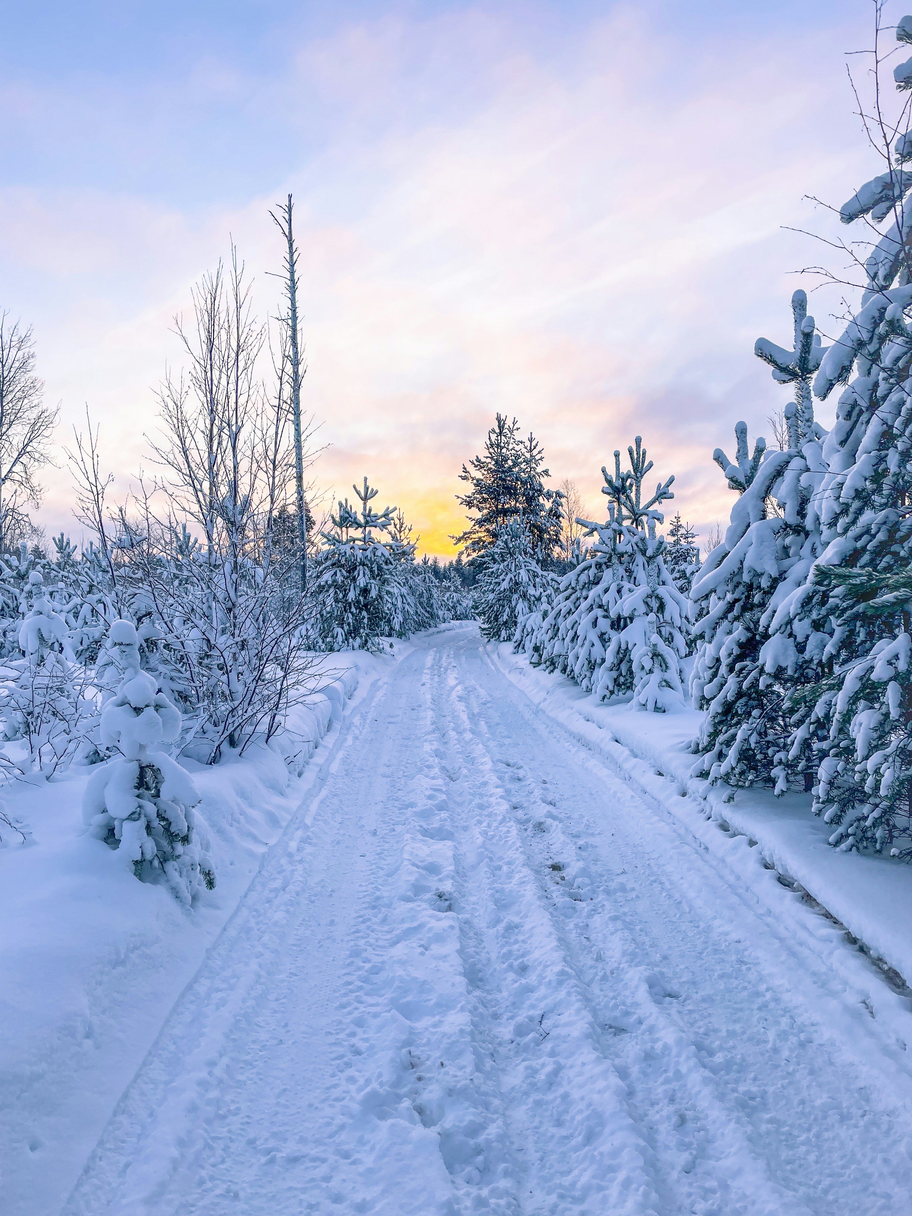 Download this free HD photo of forest, winter, snow, and path by Nicolas Messifet (@nick_brookenheimer)