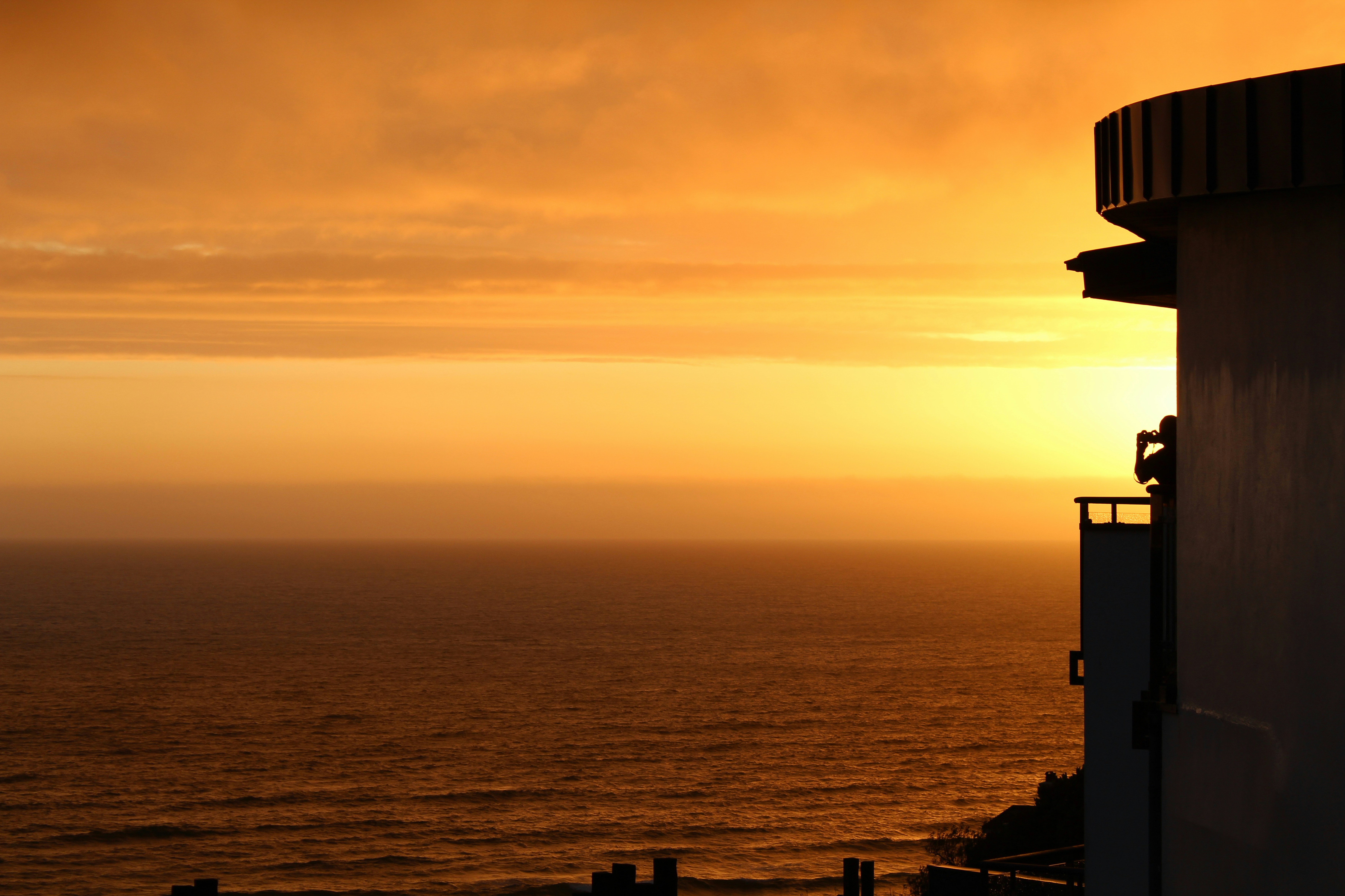 The dramatic sunset while staying in the beautiful Cornish bay of Mawgan Porth, capturing the sunset as well as another admiring photographer.