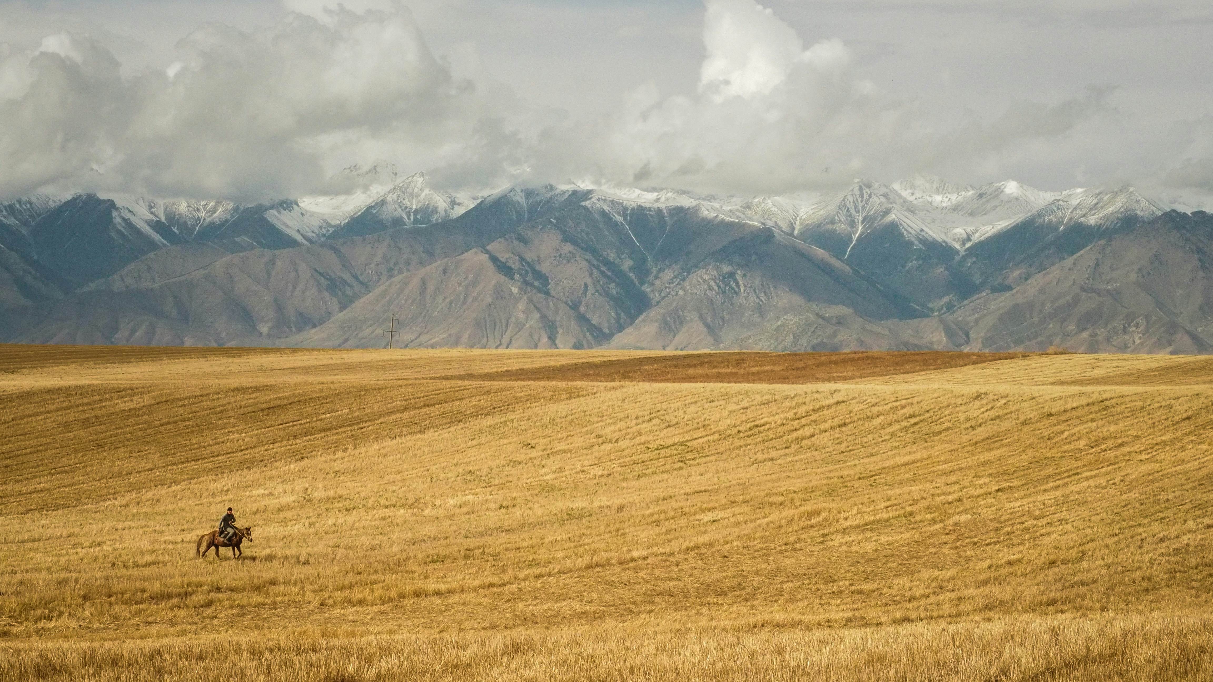 I’m camping on the shores of lake Issyk Kul (Issyk Kol) and a horseman rides by to say ‘hi’.