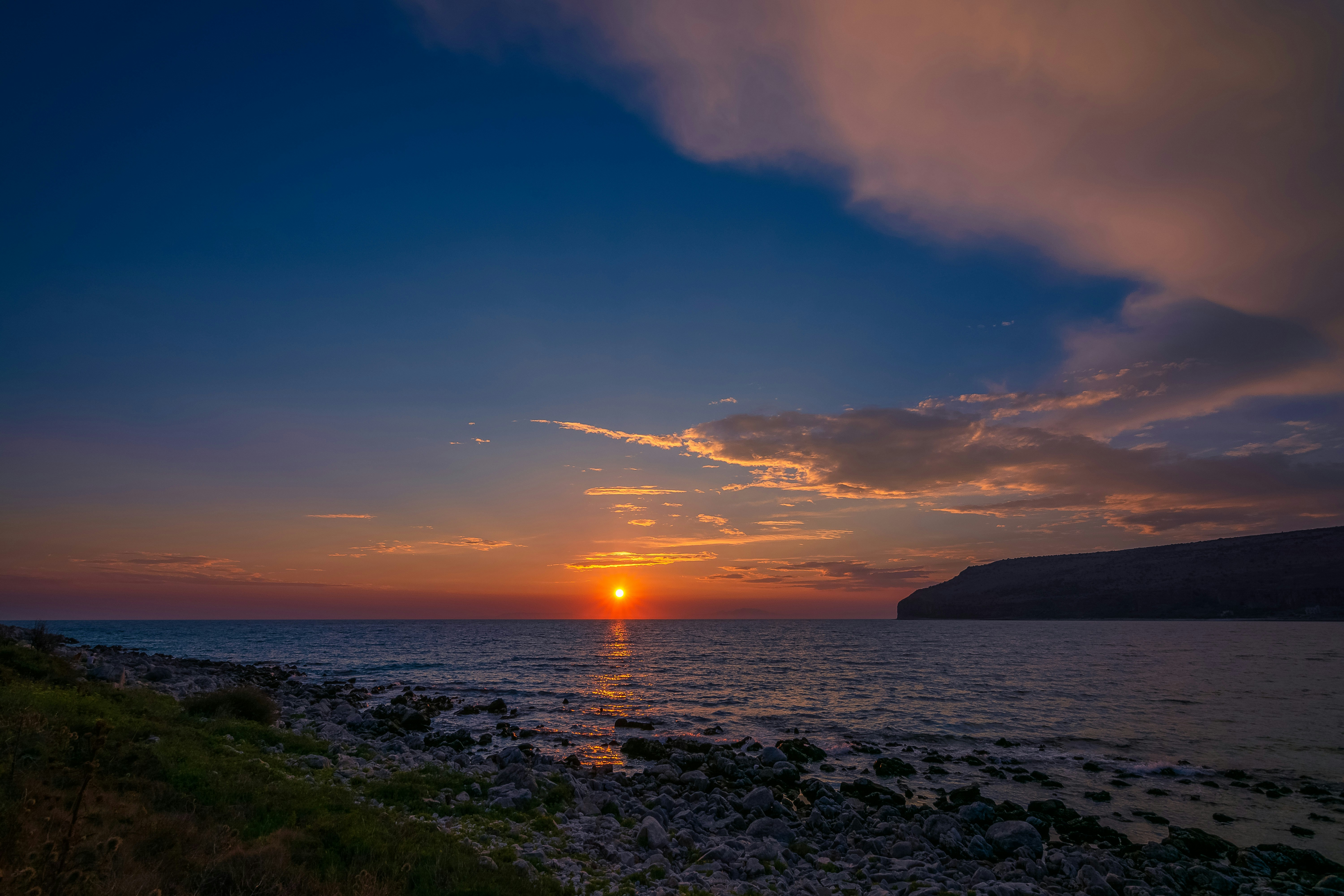 Beautiful and colorful sunset at Limeni village in Mani Peninsula, Greece