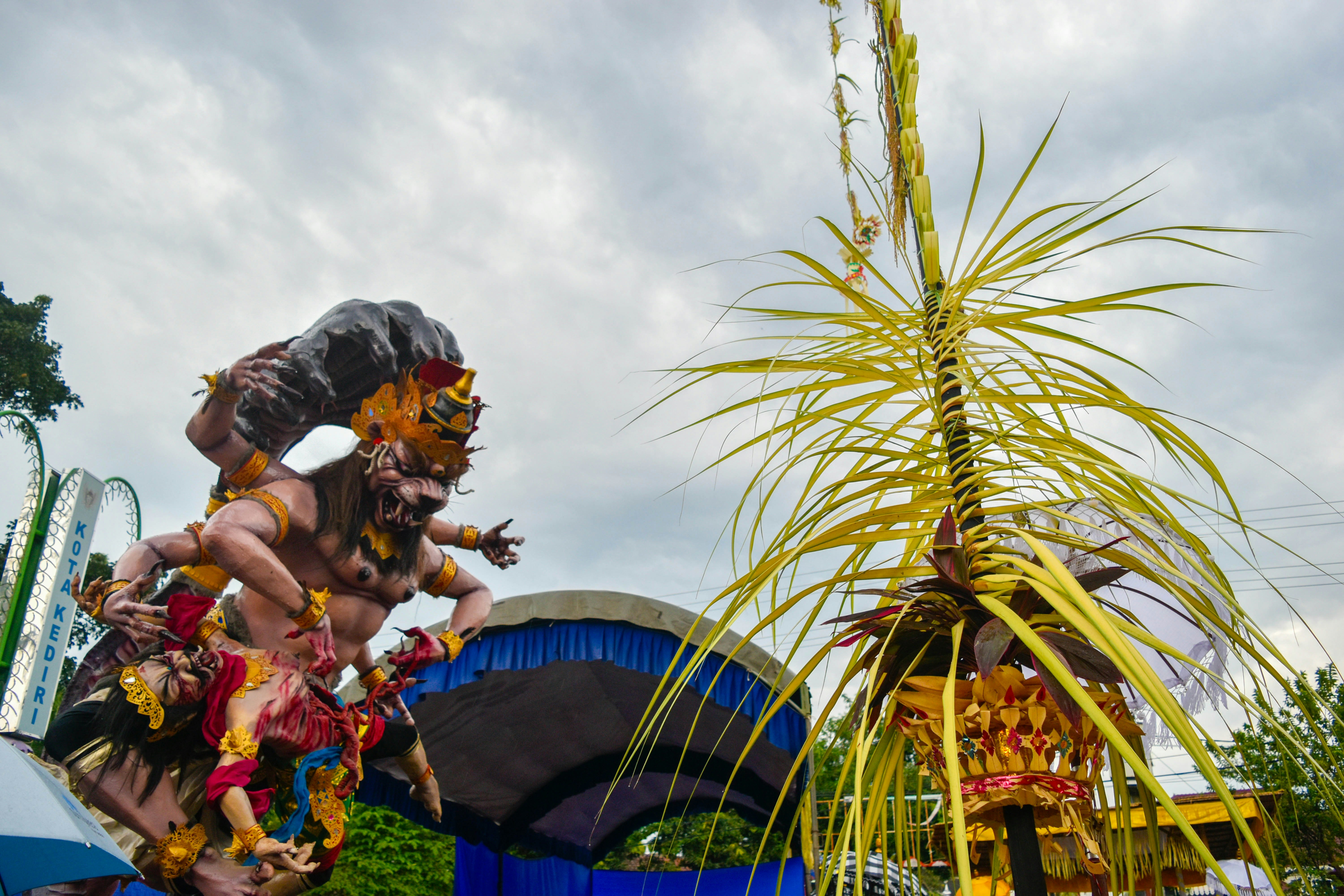 Ogoh-ogoh are statues built for the Ngrupuk parade, which takes place on the eve of Nyepi day in Bali, Indonesia. Ogoh-ogoh normally have form of mythological beings, mostly demons. As with many creative endeavours based on Balinese Hinduism, the creation of Ogoh-ogoh represents spiritual aims inspired by Hindu philosophy