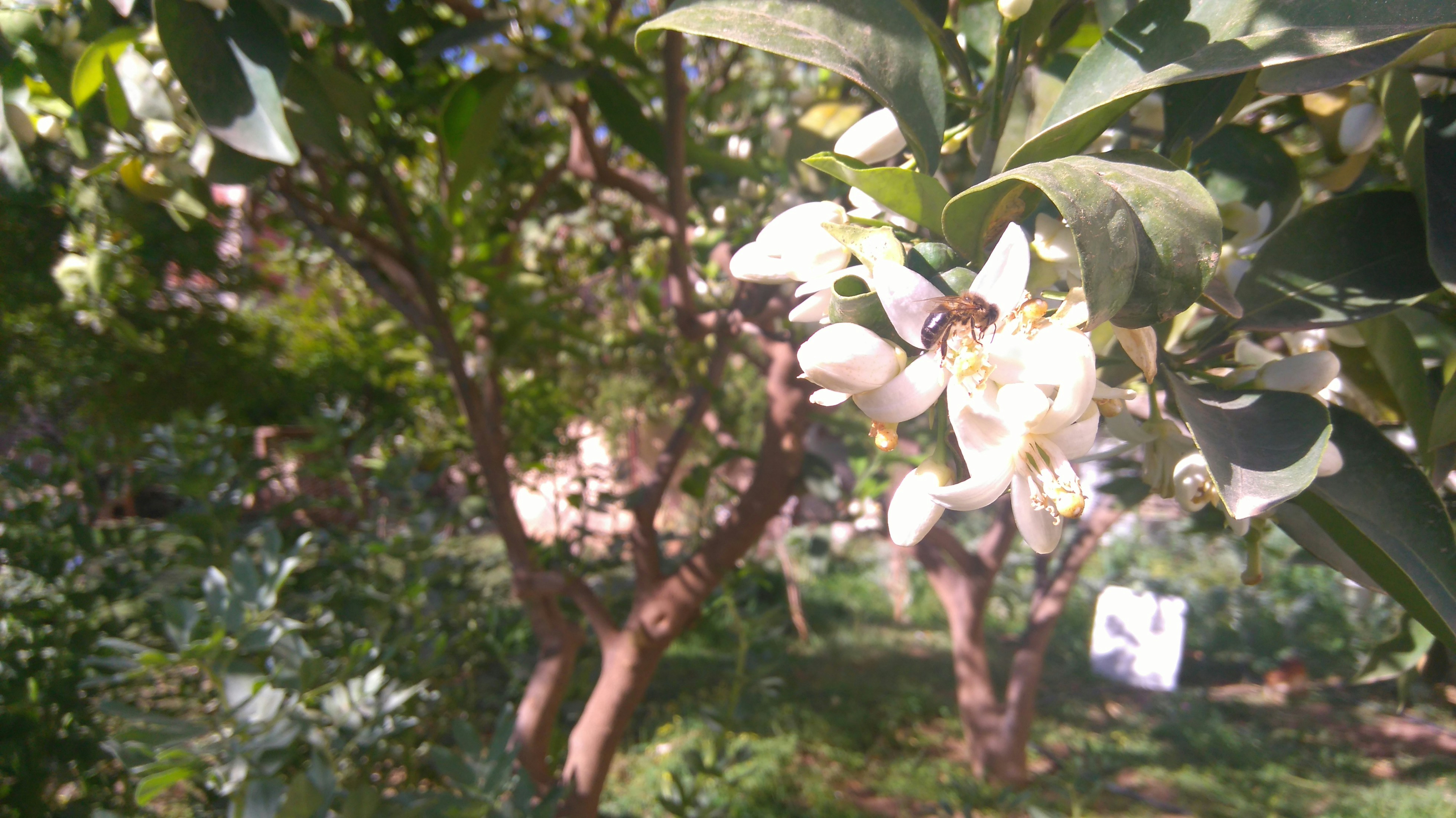 During the vacatin of Spring i took my family to visit my wife’s grand mother, and in her garden there is a lemmon tree with bee around it.