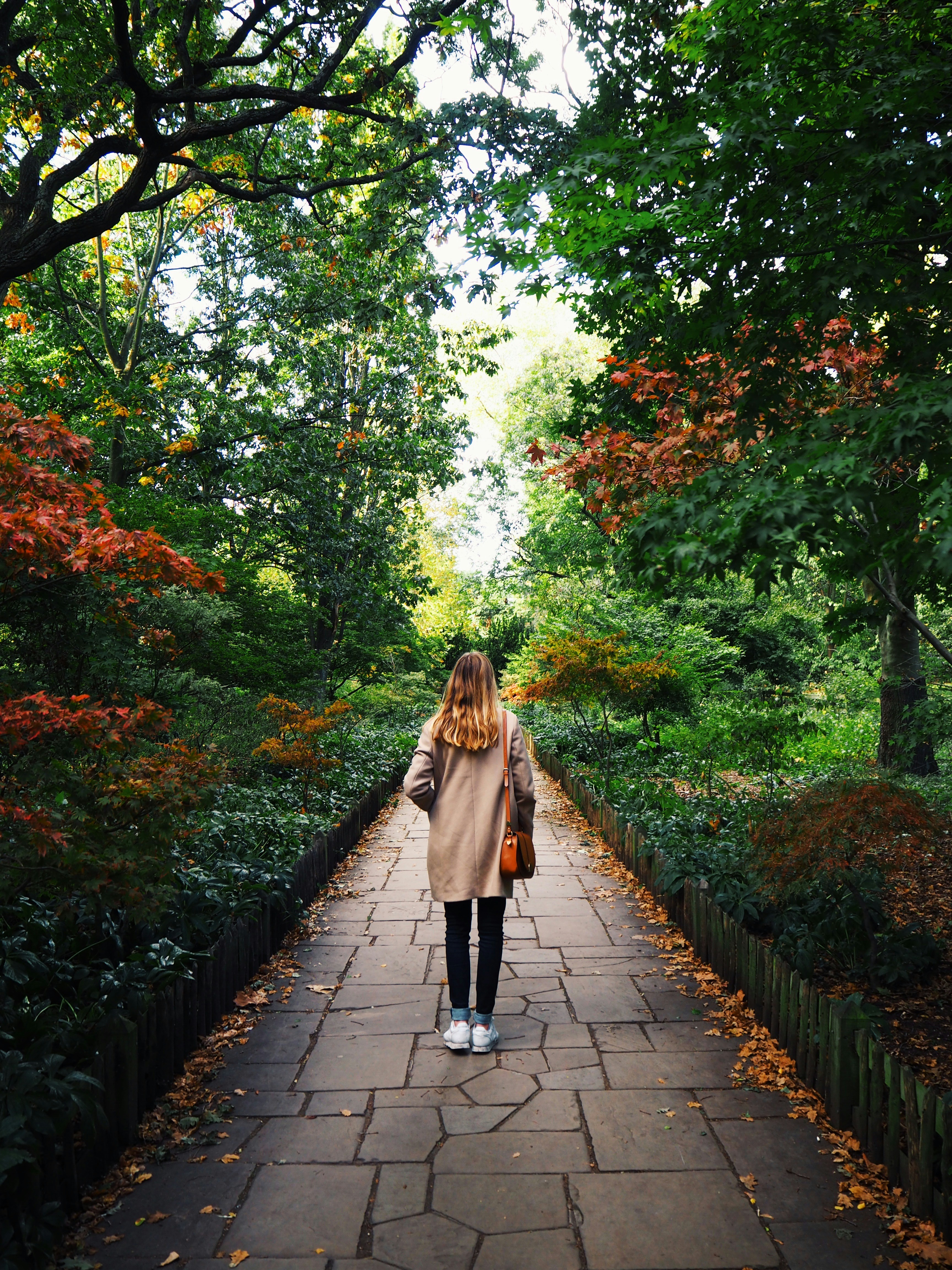 With my girlfriend with whom I’m studying at the University of Warwick in England, we decided spontaneously to go and visit London a little bit. While walking around town, we arrived in Holland Park and while going down the small woods, I turned around to see that nobody was behind, nor in front of us. I told her to stand still in the middle, I moved a little bit and the shot was taken. Only one shot.