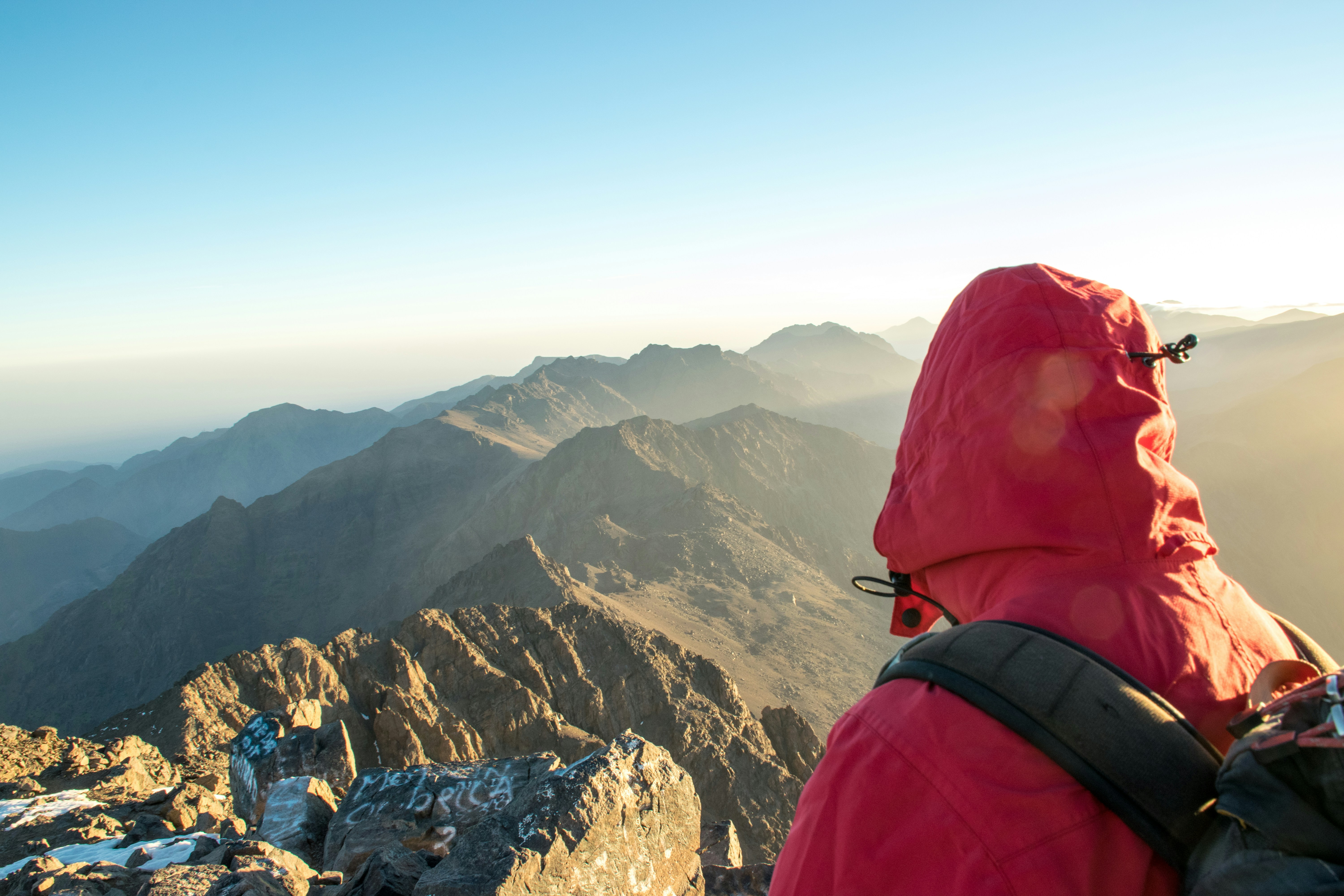 As we summited the highest peak in North Africa, we were greeted with the dawn. Its rays warmed us after close to 4 hours of climbing in the shade of the mountain. As the sun began melting the frost from my face, I felt warmth return to my hands and grabbed this snap. Then returned to appreciating this special place - which we had to ourselves.