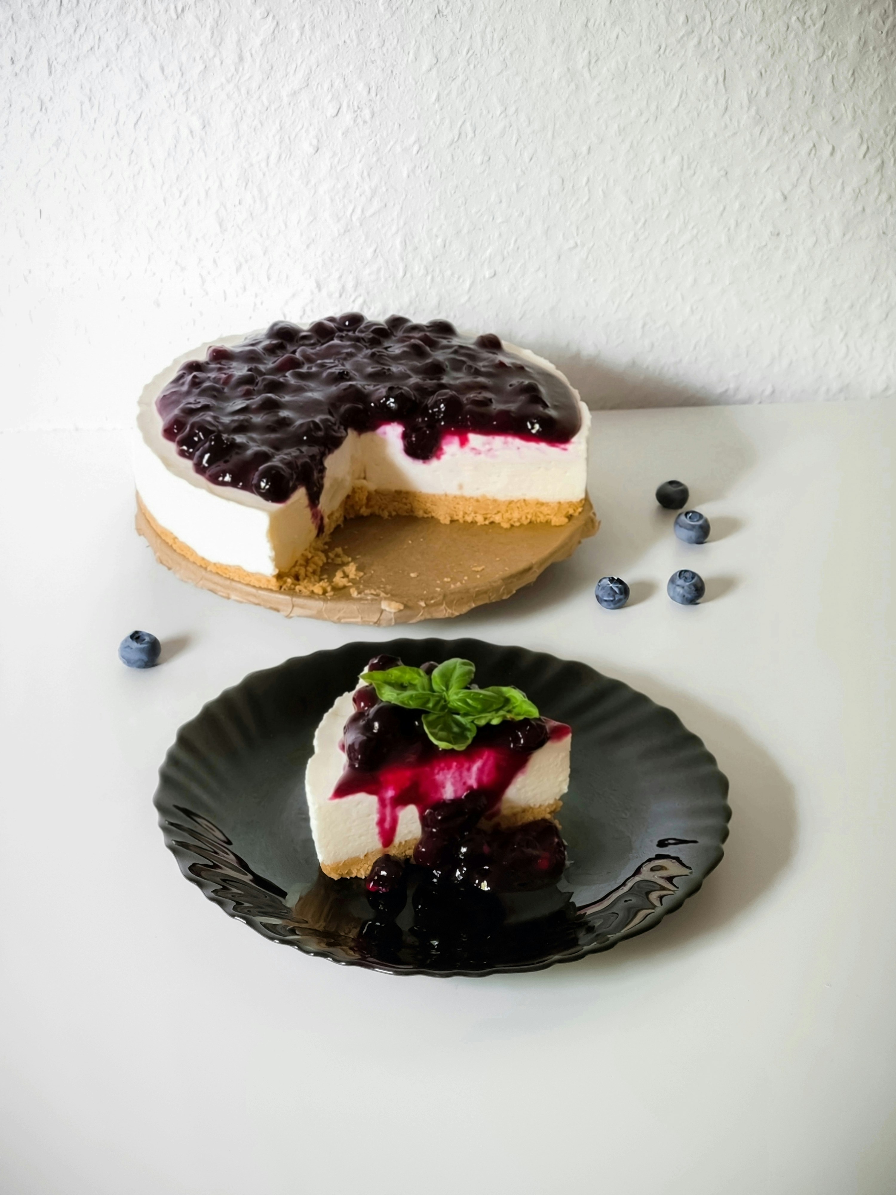 Rich, creamy, decadent cheesecake with blueberry compote.