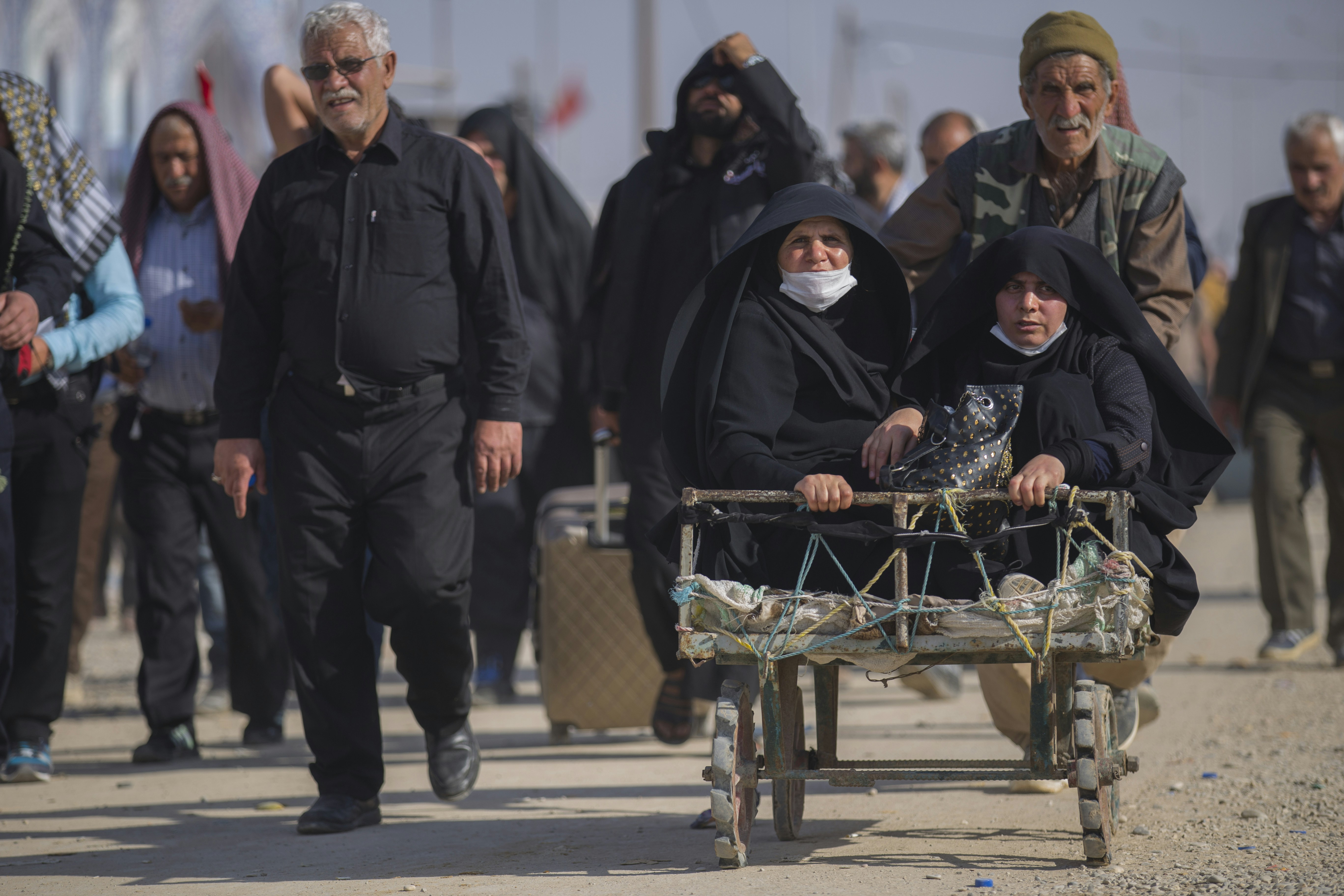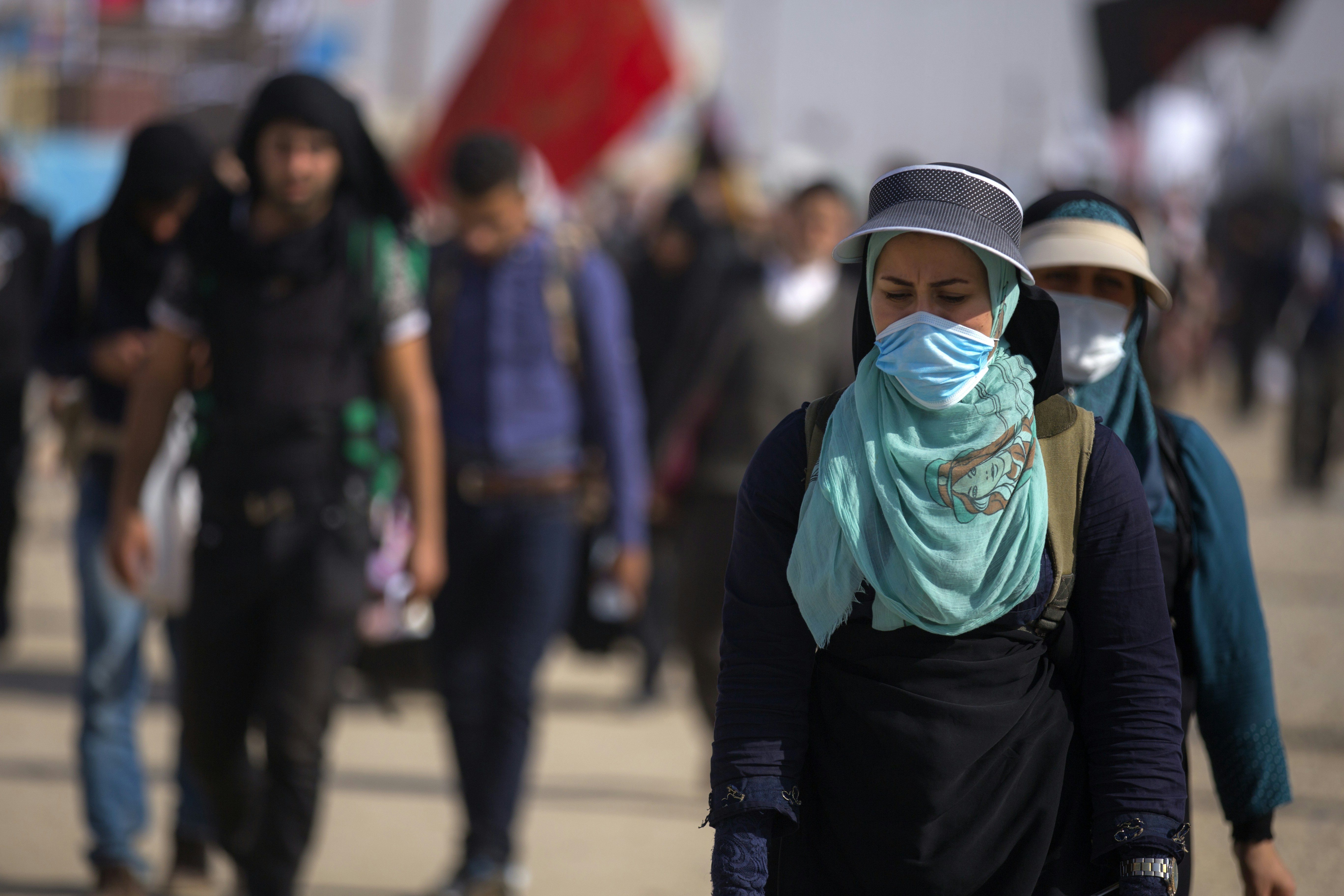mother and daughter wearing pollution protection masks in taxi