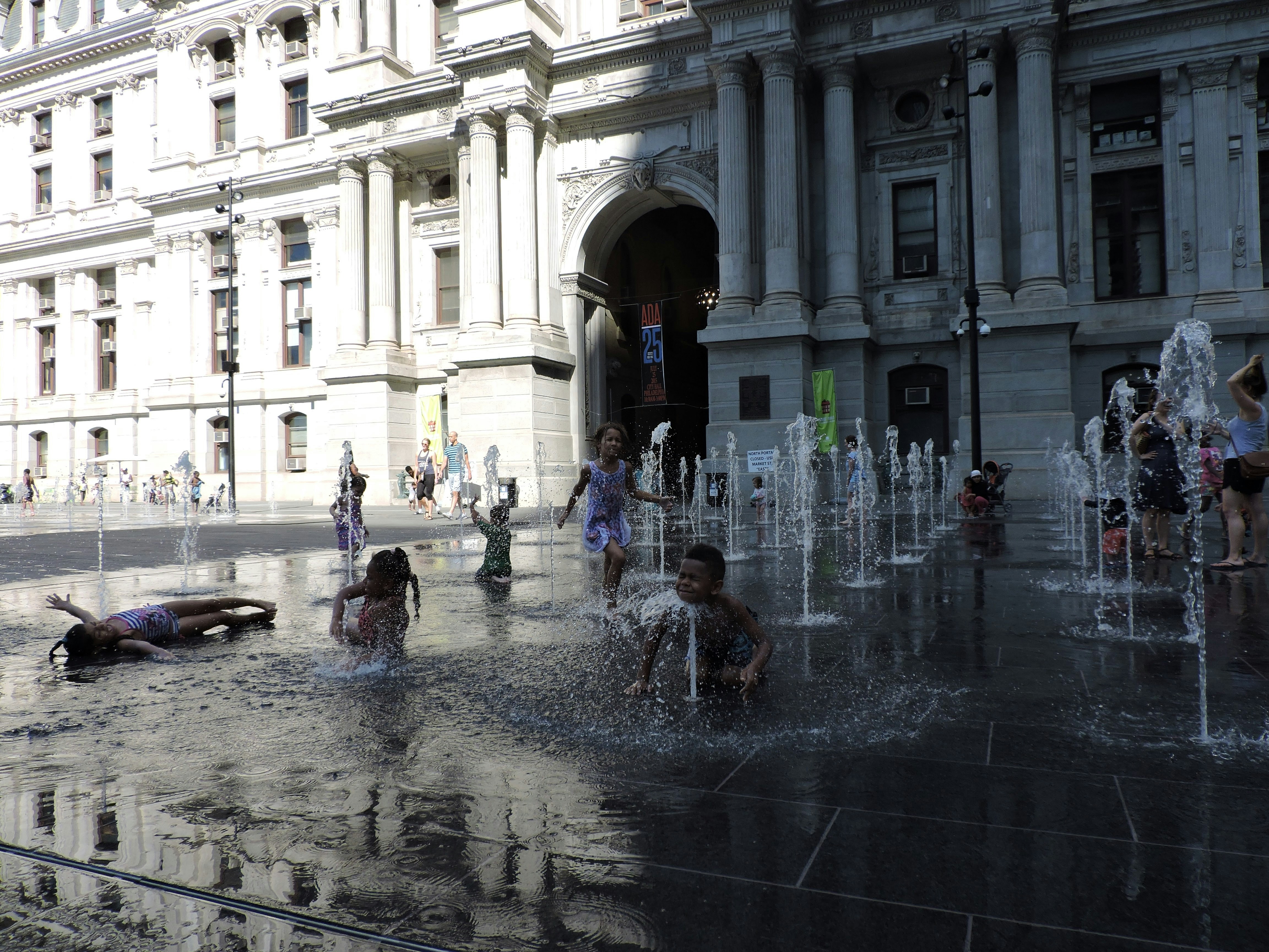 During a trip from Brazil to USA on summer time, I went to the Philadelphia City Hall on a really hot day and got this shot of children playing and refreshing themselves with water.