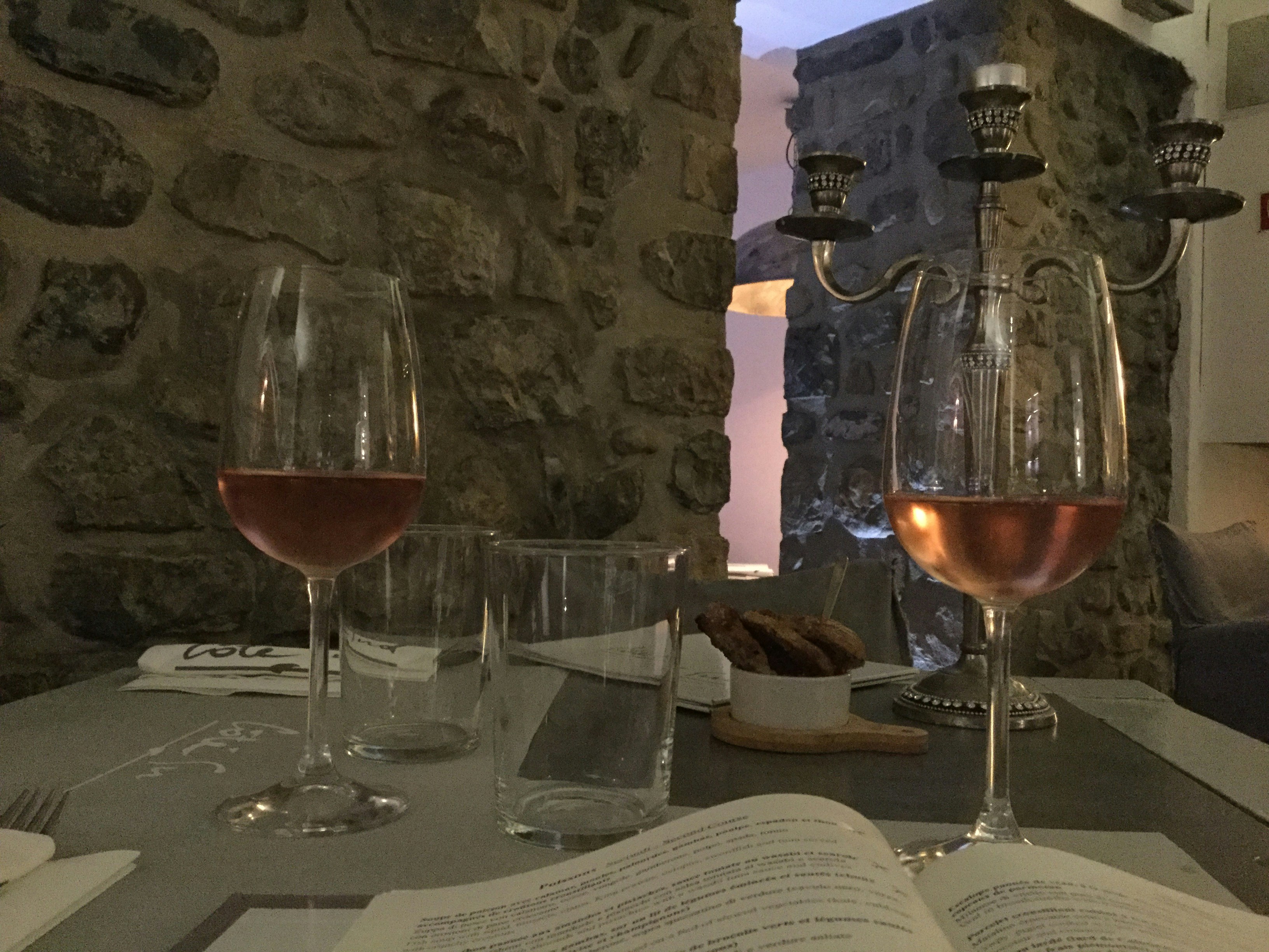 Wine in French restaurant, city Menton