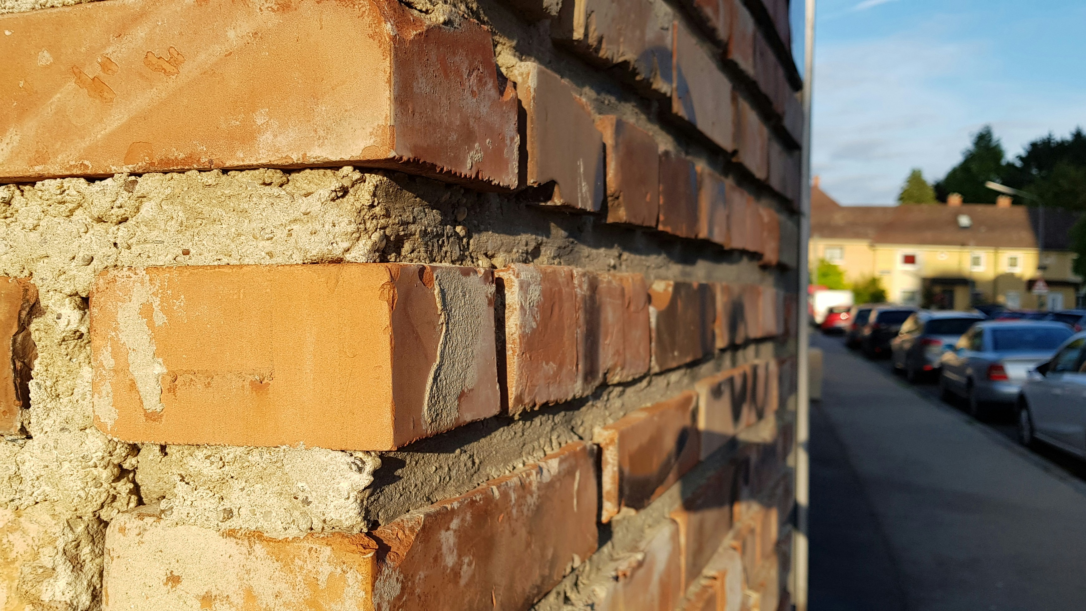 A brick wall in the side street