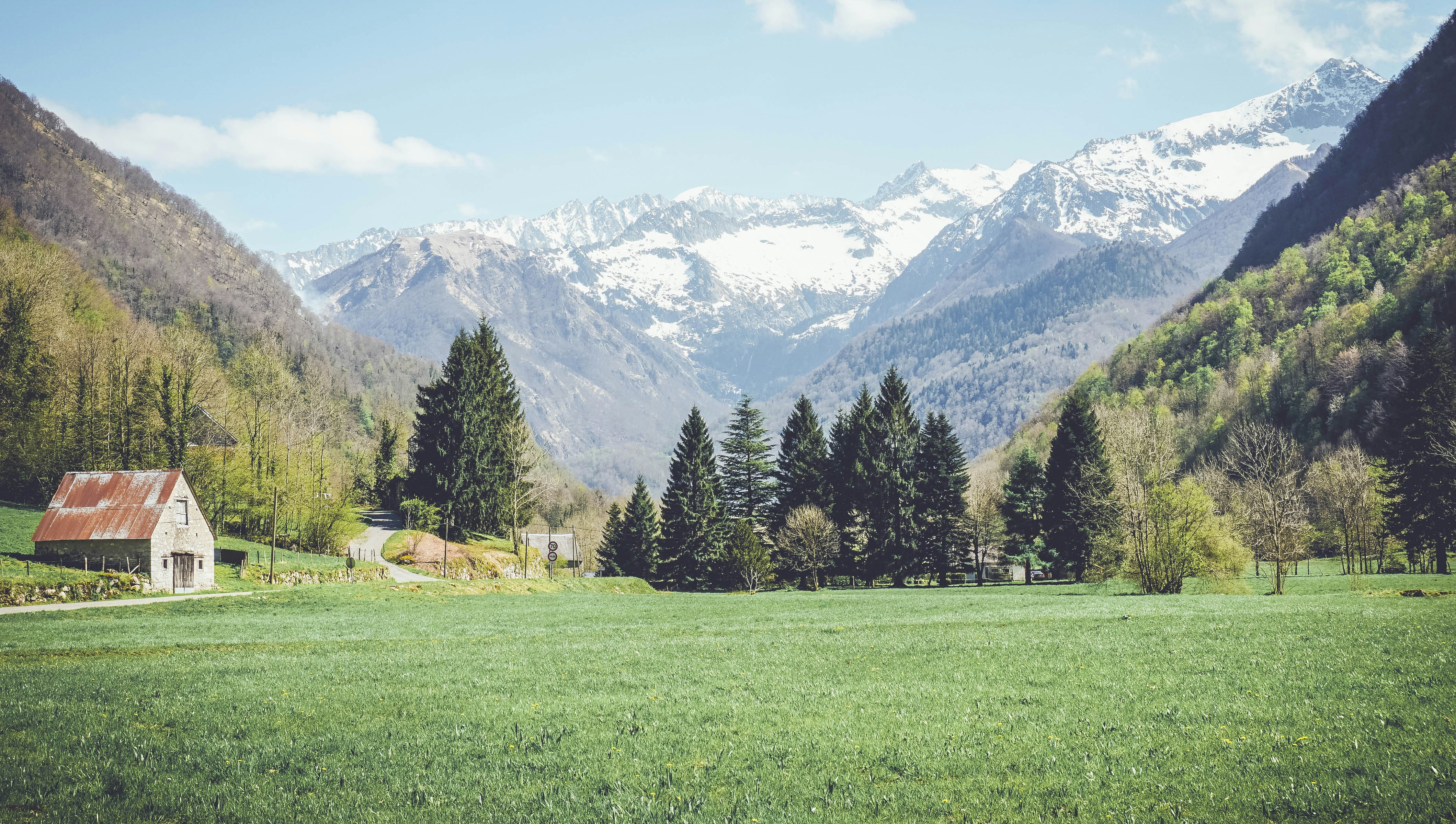 After a day hiking in the mountains, I fell in love with this landscape. This perfect green just at the foot of the Pyrenees mountains after seeing the snow few hours before was amazing. I parked the car as soon as I could to take this picture.