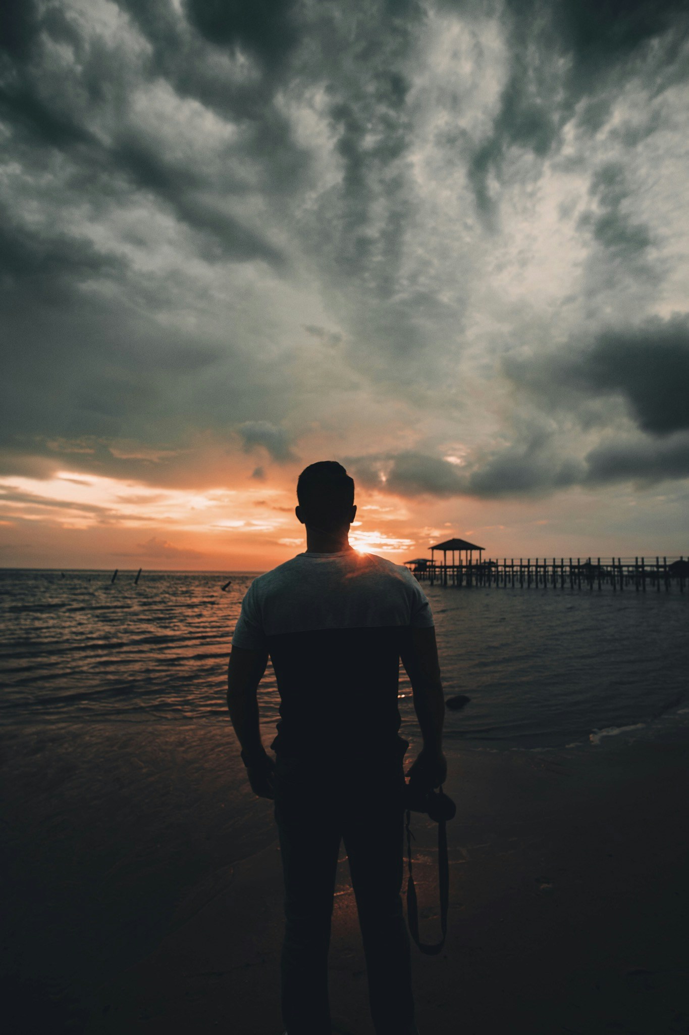 Long exposure of a group of friends hanging around a beach bonfire lighting the dark night
